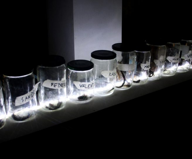 La residenza per autori con.divisione è nata nell’estate del 2012. Dodici autori hanno lavorato insieme alla realizzazione di una mostra da allestire negli spazi del castello Angioino di Mola. Nella sua prima edizione la residenza ha costituito l’inizio di un percorso di indagine sulle possibilità dello stare insieme, che tentasse di comprendere e sperimentare forme di condivisione, contemplandone le possibili declinazioni all’interno del lavoro collettivo. Il risultato che ne è scaturito rappresenta il tentativo dei singoli autori di coinvolgere gli altri partecipanti come parte attiva del proprio lavoro, in continuo confronto e scambio di competenze.