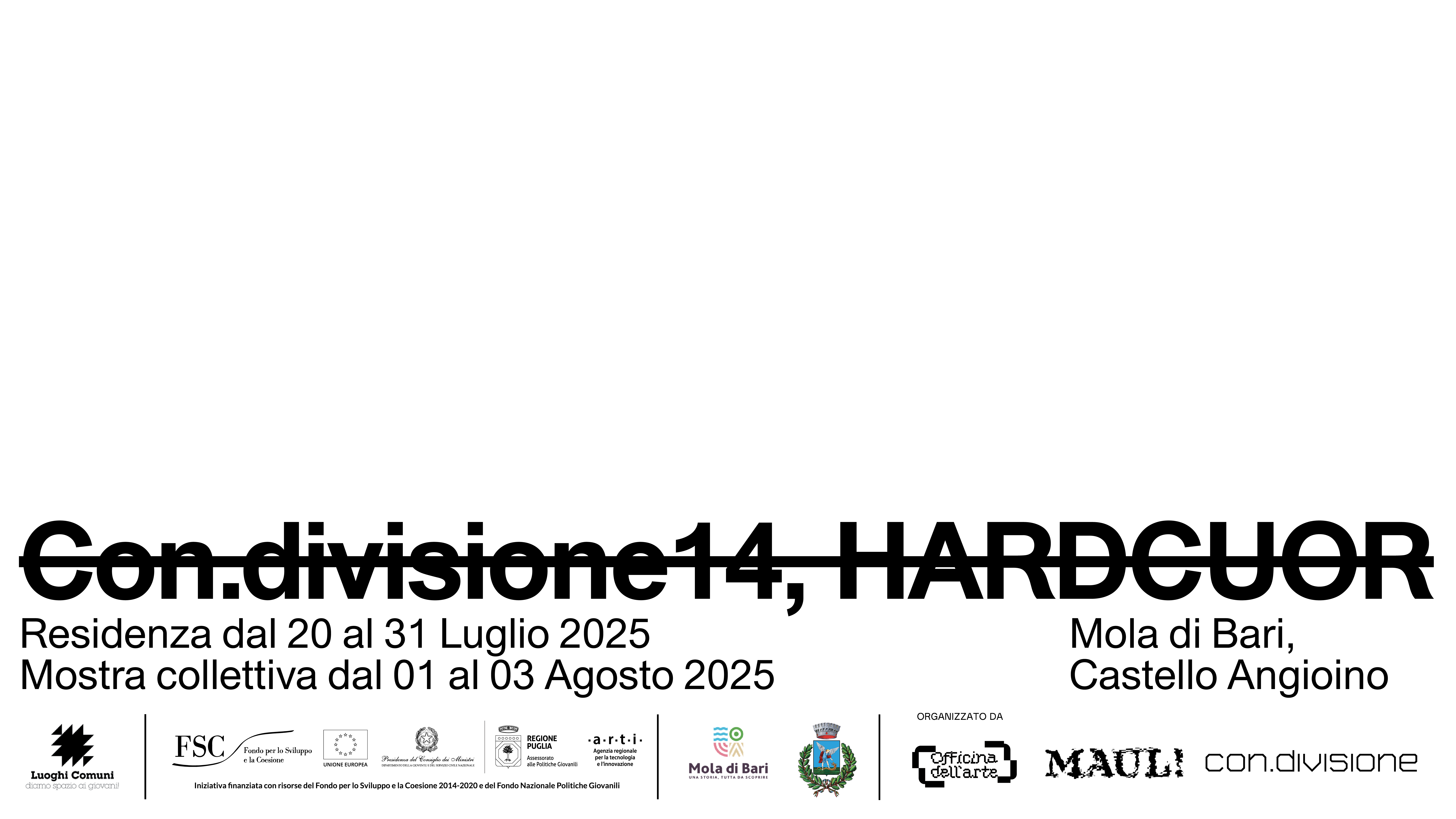 In questa vibrazione incerta, in quella fatica che pulsa sotto pelle, va ricercata la dimensione collettiva e conviviale ed è lì che prende forma l’attitudine. Un invito a stare in ciò che si espone, che si lascia toccare e modificare dall’altro, dal diverso. Un invito a stare nel margine, senza volerlo centralizzare. A restare nell’intensità del sentire, senza paura di sembrare fragili. È cuore, certo, ma anche tensione, attrito, attrazione. È la materia viva della relazione. Un cuore che si fa duro, non per difendersi, ma per reggere l’intensità del sentire. Con.divisione 14 - HardCuor è un invito all’apertura. Dobbiamo aprirci: non come gesto automatico e retorico, ma come atto poetico e politico.
